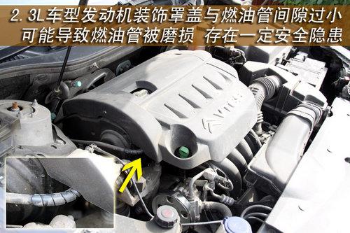 從圖中我們可以清晰的看到,發(fā)動機裝飾罩蓋確實與燃油管保護套相接觸,在車輛啟動后,由于發(fā)動機溫度較高,燃油管保護套橡膠致使有所軟化,并且發(fā)動機震動與其摩擦,可能會導(dǎo)致燃油管被磨損,存在著一定的安全隱患。