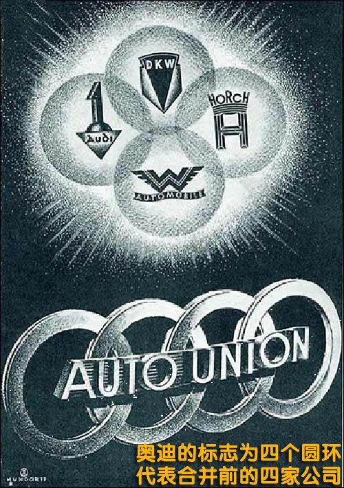 這四家公司對(duì)當(dāng)時(shí)德國汽車工業(yè)的進(jìn)步做出了杰出的貢獻(xiàn)。這四家汽車公司于1932年合并為汽車聯(lián)盟股份公司(auto union ag)。從汽車產(chǎn)量來說,汽車聯(lián)盟是當(dāng)時(shí)德國第二大汽車制造公司,商品標(biāo)志為四個(gè)連接的圓環(huán),代表參與合并的四家汽車公司。世界上也就首次出現(xiàn)了四環(huán)標(biāo)志。