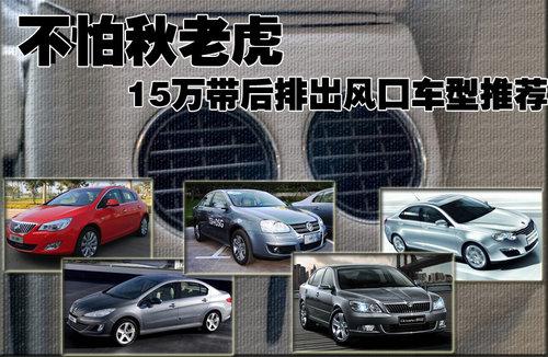 售價在15萬左右的車型配備后排出風口的車型包括了標致408、速騰2010款、新明銳、榮威550、英朗XT和?怂箖蓭龓F渲袠酥408和速騰2010款全系均采用此項配置,但是由于價格原因只有部分入選。除了英朗XT外,其余6款車都有現(xiàn)金優(yōu)惠。