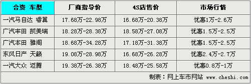 近年來隨著國家政策方面的逐漸開放,許多進(jìn)口車型的價(jià)格已慢慢逼近合資品牌的價(jià)格。在中級(jí)車市場(chǎng)上,這樣的價(jià)格形式更加突出,進(jìn)口起亞方面宣布在8月19日推出一款中級(jí)車——凱尊,其預(yù)計(jì)的售價(jià)21.98萬元起,相信在其退出后,一定會(huì)給同級(jí)合資品牌車型帶來不小的壓力。與此同時(shí),我們也整理出了8款同級(jí)車的近期行情,供欲購車消費(fèi)者參考。