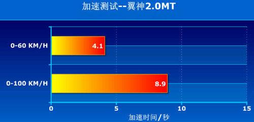 2.0升發(fā)動機(jī)配合5擋手動變速箱應(yīng)該是目前兩車最快的動力組合,在性能的比拼上,最終成績和發(fā)動機(jī)的數(shù)據(jù)表現(xiàn)比較一致,翼神在百公里加速測試中比?怂箍炝税朊胱笥,實(shí)際駕駛時感受不會太明顯。