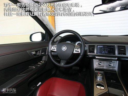 對(duì)于一款售價(jià)接近200萬元的性能車來說,內(nèi)飾部分比外觀更需要給人帶來激情,并且一定要讓擁有者感覺到有價(jià)值的創(chuàng)新設(shè)計(jì),最好從拉開車門那一瞬間,就要讓主人感到與眾不同。好在捷豹XFR做到了以上我說的幾點(diǎn),以駕駛者的視角來看,中控臺(tái)全部采用真皮包裹,扎實(shí)的用料以及細(xì)膩的做工基本上無可挑剔。