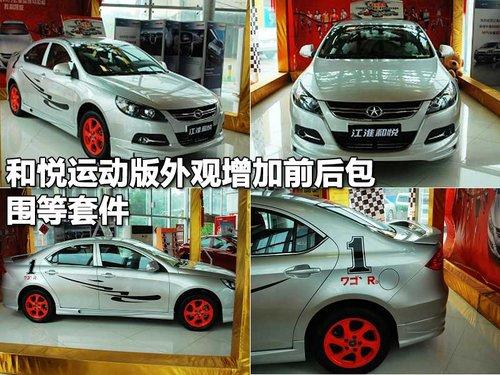 和悅運動版的外形還是具有相當(dāng)?shù)挠H和力,但進(jìn)行了外觀改裝后,顯得運動味十足,加了前包圍的運動版前臉給人更加銳利的感覺。和悅的前臉采用雙“U”型設(shè)計,端莊大氣,車身側(cè)面,寬大的后視鏡有些夸張,改裝的紅色鋁合金輪轂運動感很強(qiáng)。側(cè)裙加裝了運動包圍,另外除了尾部的運動包圍,還增加了一個運動導(dǎo)流板。