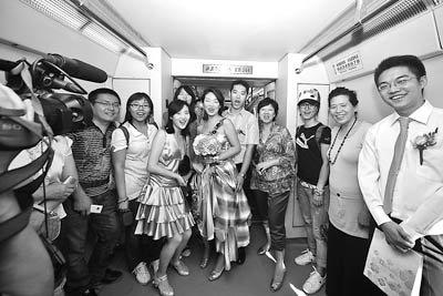 8月28日,北京,一對(duì)新人一改平常的婚車(chē)車(chē)隊(duì)接親,以騎自行車(chē),換城鐵、地鐵的方式到達(dá)婚禮現(xiàn)場(chǎng),舉辦了一個(gè)綠色、時(shí)尚的婚禮。