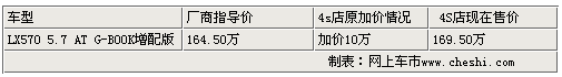 編輯從北京地區(qū)雷克薩斯4S店了解到,目前北京地區(qū)緩解了2010年初起因供應(yīng)緊張的加價10萬的局面,現(xiàn)購買雷克薩斯LX系車型出現(xiàn)了較上段時間加價十萬相對優(yōu)惠的僅加價5萬的現(xiàn)車銷售,顏色有黑、白、紅少量可供選擇。如果選擇其他顏色,交車款的30%的定金,最多等待2個月消費(fèi)者便可提車。如消費(fèi)者有興趣的話,可以致電經(jīng)銷商處詳詢。由于北京汽車市場變化較快,各店所銷售車輛顏色可能會有所差異。