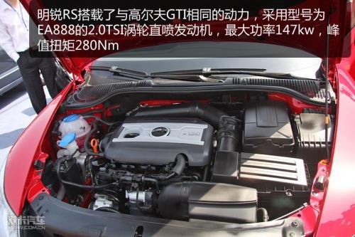 明銳RS搭載了與高爾夫GTI相同的發(fā)動機和變速箱,動力上采用EA888系列的2.0TSI渦輪直噴發(fā)動機,最大功率147kw,峰值扭矩280Nm,同樣匹配型號為DQ250的六速DSG雙離合變速器,這一動力組合用在高爾夫GTI上的加速成績?yōu)?.1秒。