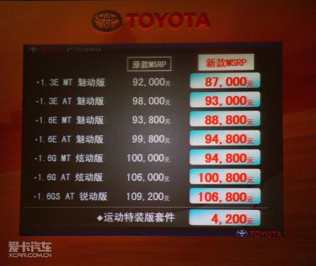 廣汽豐田新雅力士共推出了1.3E魅動版手動擋和自動擋、1.6E魅動版手動擋和自動擋、1.6G炫動版手動擋和自動擋、1.6GS銳動版自動擋等共7款車型。