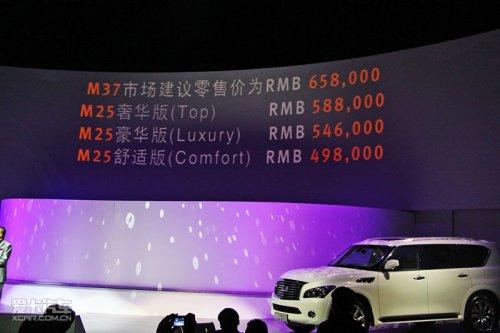 官方指導(dǎo)價:英菲尼迪QX56 149.8萬元;英菲尼迪M25 49.8-58.8萬元;M37 65.8萬元