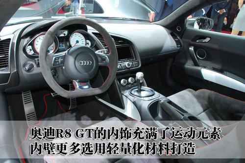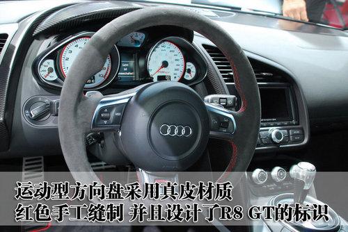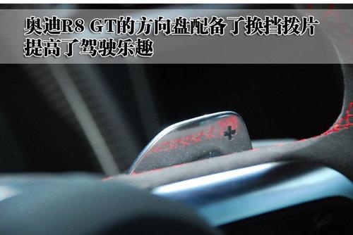 奧迪R8 GT深色調(diào)的內(nèi)飾風(fēng)格充滿了運(yùn)動元素,車內(nèi)壁很多的都是選用輕量化的材料打造,而且內(nèi)飾的材料都非常柔軟,避免在車內(nèi)出現(xiàn)磕磕碰碰時(shí)受傷。奧迪R8 GT的運(yùn)動型方向盤配備了換擋撥片,采用真皮材質(zhì),并且采用手工縫制。