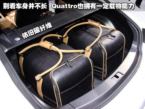 奧迪Quattro概念車除了擁有超強的運動能力外,儲物能力同樣并不遜色,雖然是一款掀背車,奧迪Quattro概念車行李箱依舊可以放下如此兩個大包,絕對夠用。