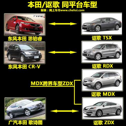 目前廣汽本田/東風(fēng)本田生產(chǎn)的部分車型都與謳歌車型同來自一個平臺。例如:東風(fēng)本田的高性能運動轎車思鉑睿就和謳歌TSX同平臺生產(chǎn)。同出一轍東風(fēng)本田的CR-V與謳歌RDX也存在同樣的關(guān)系。而即將上市的廣汽本田歌詩圖則是與謳歌MDX的跨界車型ZDX的平臺相同。廣汽本田歌詩圖上市后的價格明顯要比原裝引進(jìn)謳歌ZDX的價格低,當(dāng)然也更容易被中國消費者所接受。