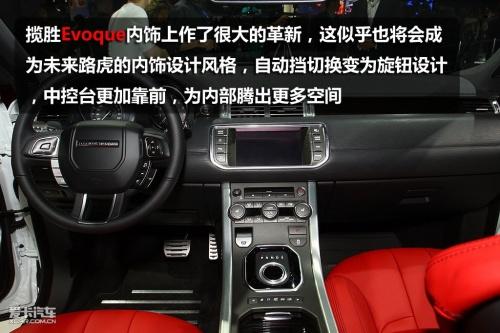 由于內(nèi)飾的圖片還沒有公布出來,據(jù)猜測和三門版攬勝Evoque的內(nèi)飾風(fēng)格設(shè)計相同。至于配置方面,可能會有所調(diào)整,但是一些在三門版攬勝Evoque出現(xiàn)的配置將會延續(xù)到五門版車型上。譬如自動泊車輔助系統(tǒng)、盲點監(jiān)控系統(tǒng)、停車預(yù)熱定時器裝置、無鑰匙進(jìn)入系統(tǒng)、可自動調(diào)節(jié)的自適應(yīng)大燈系統(tǒng)、數(shù)字/衛(wèi)星電視與DVD播放系統(tǒng)、后座娛樂套件等豪華配置。