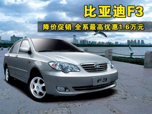 比亞迪F3是一款實(shí)用的家用車型,較為經(jīng)濟(jì)的用車成本和較低的入門價(jià)格能很好的滿足消費(fèi)者的需求。今年比亞迪F3又推出了智能白金版,新款車型增加了無鑰匙系統(tǒng)、智能娛樂通訊系統(tǒng)等高端配置。近日,網(wǎng)上車市記者從比亞迪北京經(jīng)銷商處了解到,比亞迪F3全系車型最高降價(jià)1.6萬元,詳情請(qǐng)見下表: