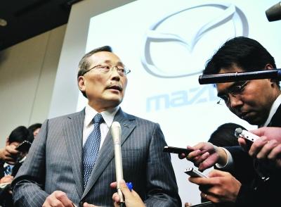 圖為日本馬自達汽車公司總裁山田憲昭18日在東京出席記者招待會的情形。該公司當天宣布,美國福特汽車公司對其持股比例將從11%降至3.5%,這將使前者喪失馬自達最大股東身份。據(jù)悉,福特自1979年以來一直是馬自達的最大股東,一度擁有馬自達超過1/3的股份,自2008年全球金融危機爆發(fā)以來開始減持馬自達股份。