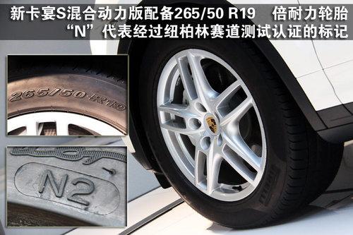 新卡宴混合動力版車型配備了雙五幅式的輪圈,在造型方面突出運動感的設計,與之搭配的是265/50 R19倍耐力輪胎,輪胎中所涉及的N2字樣則表示,該輪胎已經(jīng)過紐柏林賽道測試的認證,這在一般品牌車型中可是很少見到的。