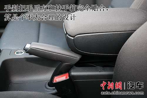 扶手箱的容量和擱手的舒適性還是值得一提的,但那個(gè)看似很個(gè)性的“7”字形手剎因?yàn)榘咽趾蠓胶头鍪窒渫耆N合,導(dǎo)致拉起來的時(shí)候手腕會(huì)和扶手箱別著勁,算是個(gè)不太合理的設(shè)計(jì)。