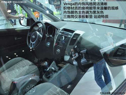 內(nèi)飾方面,Venga的內(nèi)飾風(fēng)格簡(jiǎn)潔清晰,織物材質(zhì)的座椅能帶來(lái)溫馨的觀感。內(nèi)飾顏色主色調(diào)為黑灰色,三炮筒儀表板彰顯 運(yùn)動(dòng)特質(zhì),圓形的三幅方向盤(pán)比。尤其值得一提的是,Venga的高配版本,增配了透明的全景天窗。