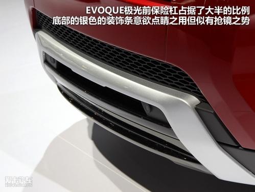 EVOQUE極光前進(jìn)氣格柵之下前保險杠占據(jù)了大半的比例,底部的銀色的裝飾條意欲點睛之用,但似有搶鏡之勢,發(fā)動機艙蓋上的進(jìn)氣口尚不知其效用究竟有多大,想必美觀之用是其最大的作用吧。