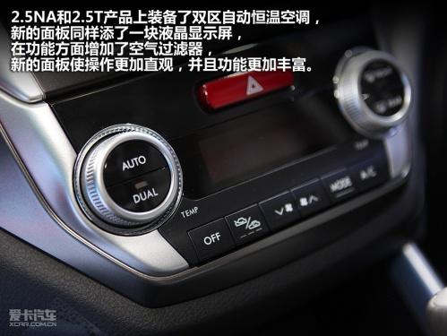 同樣在2.5NA和2.5T產(chǎn)品上裝備了雙區(qū)自動(dòng)恒溫空調(diào),新的面板同樣有一塊液晶顯示屏,在功能方面增加了空氣過(guò)濾器,新的面板使操作更加直觀,并且功能更加豐富。
