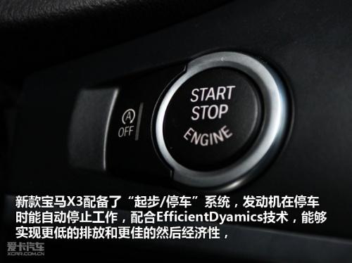 新款寶馬X3配備了“起步/停車”系統(tǒng),發(fā)動機在停車時能自動停止工作,配合EfficientDyamics技術(shù),能夠?qū)崿F(xiàn)更低的排放和更佳的然后經(jīng)濟性,當然如果您不喜歡發(fā)動機頻繁的起起停停,也可以通過一鍵啟動按鈕旁邊的小按鍵關(guān)閉該功能。