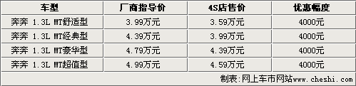 據(jù)長安轎車4S店銷售人員介紹,奔奔目前現(xiàn)車都比較齊全,但與上月相比,優(yōu)惠幅度明顯有所減少。目前奔奔1.3L四款車型只能優(yōu)惠4000元,比上個月少1000元。但銷售人員也表示,如果消費(fèi)者到店詳談,還可能有進(jìn)一步優(yōu)惠的余地。