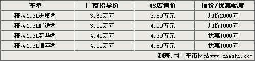 據(jù)長(zhǎng)城汽車4S店銷售人員介紹,09款精靈已經(jīng)有現(xiàn)車銷售,但進(jìn)取型和舒適型的售價(jià)分別高于廠商指導(dǎo)價(jià)2000元和1000元。另外兩款豪華型和精英型目前的4S店售價(jià)比廠商指導(dǎo)價(jià)則低1000元。目前精靈老款車型也有部分現(xiàn)車,全系最高可以優(yōu)惠5000元。