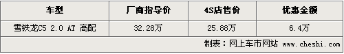 筆者從雪鐵龍經銷商處了解,進口雪鐵龍C5目前只有高配一款車型在售,現車顏色已經不齊全,只有灰色外觀可選擇。目前現車可以優(yōu)惠現金6.4萬元,優(yōu)惠以后的售價僅為25.88萬元。這批車銷售完后將暫停進口C5的引入,國產C5車預計在11月份上市,國產車預計價格在20萬-25萬之間。