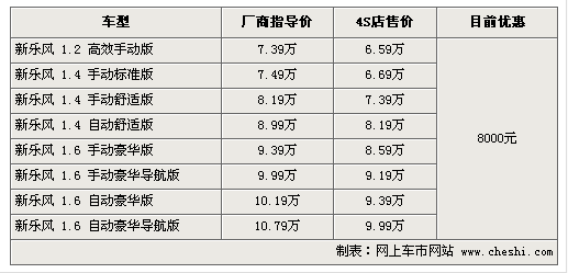 據(jù)4S店銷售人員介紹:目前新款樂風(fēng)最高優(yōu)惠達(dá)8000元,整體而言現(xiàn)車較充足,但1.2升車型需要預(yù)訂,預(yù)定周期為1-3周。由于1.2升車型動(dòng)力較弱且性價(jià)比并不高,所以銷量較少自然車源也不充足。1.4升排量車型是樂風(fēng)銷量主力,車型貨源充足,有興趣的朋友可以到店洽談。