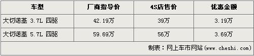 據(jù)經(jīng)銷商銷售人員介紹,大切諾基3.7L車型的優(yōu)惠金額為3.19萬(wàn)元,而高排量的5.7L車型優(yōu)惠金額為3.69萬(wàn)元,達(dá)到了全系的最高。在售的Jeep-大切諾基共分為3.7L四驅(qū)和5.7L四驅(qū)兩個(gè)車型。3.7L四驅(qū)型的優(yōu)惠金額經(jīng)3.19萬(wàn)元的優(yōu)惠后,售價(jià)降為了39萬(wàn)元。而排量稍大的5.7L四驅(qū)型的優(yōu)惠金額為3.69萬(wàn)元,降價(jià)后的售價(jià)為56萬(wàn)元。