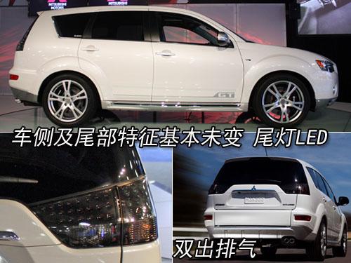 新款車型在車身側面尺寸以及線條設計上基本沒有做升級改動,仍舊維持了老款EX的樣子。通過仔細觀察,可以看出輪轂以及車側裝飾條樣式小有改動之外,其他部分還有車頂?shù)男欣罴芟Р灰娏。?jù)了解,新一代三菱歐藍德仍采用與LANCER相同的底盤,并維持老款EX車型的主要尺寸,在外觀內(nèi)飾上進行升級而已。老款歐藍德、EX的前臉仍是三菱上一代的布雷臉設計,略顯過時。