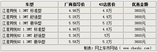 江淮的同悅及同悅RS系列車型,自上市后就吸引了眾多消費(fèi)者關(guān)注。在三廂車型銷售很長時(shí)間之后,兩廂的RS版終于進(jìn)入了北京市場開始銷售。網(wǎng)上車市網(wǎng)站由江淮轎車經(jīng)銷商處了解到,現(xiàn)在RS版以及三廂同悅車型店內(nèi)現(xiàn)車充足,購車最高可有3800元的現(xiàn)金優(yōu)惠。具體詳情如下: