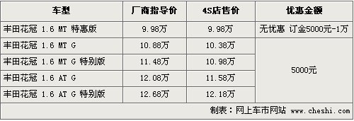 花冠是一汽豐田最熱銷的車型之一,隨著A級車市場新車的不斷增加,花冠系列對原有車型進行了多次的調(diào)整,以滿足不同需求的消費人群。在原來車型基礎上,目前花冠新推出了一款特惠版車型,售價僅為9.98萬元,首次突破了10萬元。北京地區(qū)各經(jīng)銷商現(xiàn)在已經(jīng)開始全面接受消費者的預訂。