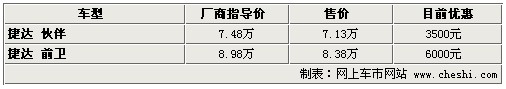 據(jù)4S店銷(xiāo)售人員介紹:目前捷達(dá)共有兩款車(chē)型,分為捷達(dá)伙伴和捷達(dá)前衛(wèi)。捷達(dá)伙伴目前優(yōu)惠3500元,捷達(dá)前衛(wèi)優(yōu)惠6000元。目前現(xiàn)車(chē)較為充足,但個(gè)別店內(nèi)現(xiàn)車(chē)顏色不全,如預(yù)定只需等待1周時(shí)間。在店內(nèi)做一條龍服務(wù),還可獲贈(zèng)價(jià)值1000元裝飾,包括地膠、腳墊、座套等。