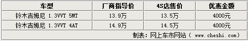 鈴木微型SUV-吉姆尼的動(dòng)力源于鈴木運(yùn)轉(zhuǎn)平穩(wěn)的M13A DOHC發(fā)動(dòng)機(jī),該發(fā)動(dòng)機(jī)以其反應(yīng)靈敏、高燃油效率而聞名于世,且頗受年輕消費(fèi)者的青睞。網(wǎng)上車(chē)市網(wǎng)站了解到,目前在北京地區(qū)購(gòu)買(mǎi)進(jìn)口鈴木吉姆尼可以得到4000元的現(xiàn)金優(yōu)惠。具體詳情如下: