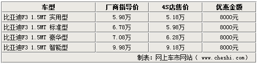 據(jù)比亞迪汽車4S店銷售人員介紹,目前比亞迪F3智能白金版只有實(shí)用型、標(biāo)準(zhǔn)型和豪華型有現(xiàn)車銷售,智能型和自動(dòng)擋車型都現(xiàn)車不足,即使預(yù)訂也無法得知具體到店時(shí)間,F(xiàn)在購(gòu)買比亞迪F3智能白金版可以有較大的優(yōu)惠幅度,其中實(shí)用型,豪華型以及標(biāo)準(zhǔn)型均可以優(yōu)惠8000元;而智能型也可以優(yōu)惠8000元,但需要預(yù)訂。該比亞迪4S店銷售人員表示,如果到店詳談,還可以有更多的優(yōu)惠幅度。