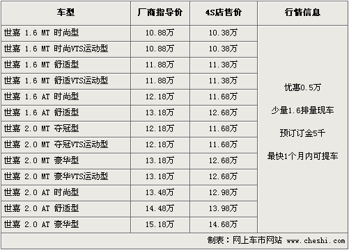 據(jù)東風(fēng)雪鐵龍4S店銷售人員介紹,世嘉目前在售車型共有13款,全系優(yōu)惠5千元,現(xiàn)車只有部分1.6排量車型,2.0車型需要預(yù)訂,訂金5千元,最快1個(gè)月內(nèi)就可以提車。另據(jù)了解,所有手動(dòng)款車型都有普通版及VTS運(yùn)動(dòng)版可供選擇,其價(jià)格是完全相同的,可根據(jù)消費(fèi)者自身要求購買。如消費(fèi)者有意購買,到店詳談會(huì)有更優(yōu)惠的價(jià)格。北京地區(qū)各4S店由于訂單不同,各店銷售的現(xiàn)車顏色有所不同。
