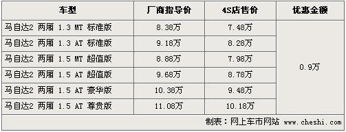 馬自達2系列是日系A(chǔ)0級車中的一款優(yōu)秀小生,結(jié)合了良好的安全性、舒適性及燃油經(jīng)濟性表現(xiàn),非常適宜首次購車的用戶。目前馬自達2兩廂最高可以優(yōu)惠現(xiàn)金0.9萬,具體行情參考如下: