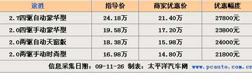 日前,編輯走訪北京現(xiàn)代二級經(jīng)銷商時了解到,目前購買途勝全系車型可享受最高2.78萬元現(xiàn)金優(yōu)惠,其中2.0兩驅(qū)手動時尚型最終售價僅為14.8萬元,優(yōu)惠后的性價比還是很不錯的,店內(nèi)現(xiàn)車情況較充足,具體詳情見下表: