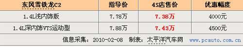 筆者近日走訪北京東風(fēng)雪鐵龍4S店時(shí)獲悉,目前店內(nèi)一批1.4L C2增配車型正進(jìn)行促銷,除了增加(駕駛座椅高度可調(diào)、電動(dòng)后視鏡、電動(dòng)后窗)等配置外,現(xiàn)金優(yōu)惠方面也最高達(dá)到了4500元,算下來(lái)累積優(yōu)惠達(dá)到萬(wàn)元左右。據(jù)了解4S銷售人員表示他們更看好1.4升車型在北京市場(chǎng)的銷售,原因主要是C2作為一款以運(yùn)動(dòng)、時(shí)尚和外觀為特點(diǎn)的小車型,吸引的更多是年輕人的目光,而這批獨(dú)有顏色的車型也是為了迎合了此類需求。
