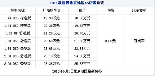 近日,愛卡汽車從一汽大眾經(jīng)銷商處了解到,2011款大眾邁騰優(yōu)惠8000元,現(xiàn)車顏色不全,以黑色為主。詳情請見下表: