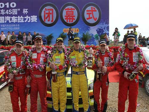 中新網(wǎng)5月17日電 2010年中國(guó)汽車(chē)?yán)﹀\標(biāo)賽(簡(jiǎn)稱(chēng)CRC)南京站比賽5月16日下午在江蘇江寧圓滿(mǎn)落下帷幕,參賽的80余輛賽車(chē)也停下了轟鳴的引擎聲。在經(jīng)過(guò)兩天11個(gè)賽段的激烈爭(zhēng)奪后,東南汽車(chē)車(chē)隊(duì)、東南汽車(chē)萬(wàn)宇車(chē)隊(duì)分別獲得亞、季獎(jiǎng)杯。這兩支由“東南汽車(chē)”冠名贊助的車(chē)隊(duì)均以?xún)?yōu)異的成績(jī)完成了此次征戰(zhàn)。