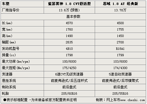 這次選擇的兩個(gè)車款是價(jià)格比較接近的,僅差1800元且都是自動(dòng)擋,首先在基本參數(shù)上,藍(lán)瑟翼神要比思域車身略長一些,但在軸距上思域要略有優(yōu)勢,這在內(nèi)部空間上將有所體現(xiàn)。在動(dòng)力上,藍(lán)瑟翼神與思域的1.8L發(fā)動(dòng)機(jī)在參數(shù)上比較接近,但在變速器上藍(lán)瑟翼神裝備的是6速CVT變速器更先進(jìn)一些。在懸掛系統(tǒng)方面,藍(lán)瑟翼神的后五連桿式也要比思域的雙橫臂式乘坐舒適性更好一些,但維護(hù)成本要高一些。