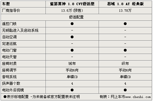 在舒適配置上,藍(lán)瑟翼神與思域都配置了遙控門鎖、單碟CD、電動(dòng)門窗、電調(diào)后視鏡等配置,而在此基礎(chǔ)上藍(lán)瑟翼神還配置自動(dòng)空調(diào),而思域?yàn)槭謩?dòng)控制空調(diào),駕駛席座椅兩車都為絨布6向調(diào)節(jié)設(shè)置。