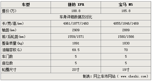 捷豹的新款轎跑車型-XFR上市后,為運動豪華車市場帶來全新的力量。成為09年備受矚目的高性能車型之一。作為兼顧跑車性能與轎車質(zhì)感的豪華車型,捷豹XFR的價格定位也相當(dāng)不菲,188.8萬的價格下也只有寶馬的M5可以堪稱勢均力敵的對手。下面我們就來看看兩款車到底誰更有魅力。