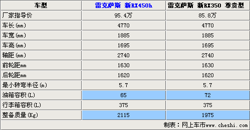 雷克薩斯新RX350和RX450h的售價(jià)相差了將近10萬(wàn)元。兩款車(chē)型的車(chē)身尺寸完全一樣,軸距也都到達(dá)到了2740mm,這些數(shù)據(jù)都確保了它們擁有著寬敞的內(nèi)部空間。兩款車(chē)型的最小轉(zhuǎn)彎半徑都是5.7m,確保了它們?cè)讵M窄道路上的通過(guò)性能。在油箱方面,由于RX450h為混合動(dòng)力車(chē)型,所以油箱容積要比汽油版車(chē)型小,只達(dá)到了65升。但是由于RX450h自身攜帶了大通量電池和電動(dòng)馬達(dá),所以自身重量要高于汽油版車(chē)型。