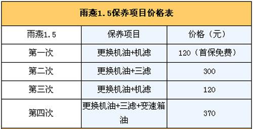 4.保養(yǎng)費(fèi):假設(shè)一年跑2萬(wàn)公里,廠家規(guī)定每5000公里保養(yǎng)一次,一年則需要做保養(yǎng)4次。由維修點(diǎn)處可知,第一次常規(guī)保養(yǎng)(只更換機(jī)油機(jī)濾,首保免費(fèi))費(fèi)用為120元。第二次三濾全換是300元,第三次常規(guī)保養(yǎng)(更換機(jī)油機(jī)濾)120元,第四次更換三濾和變速箱油費(fèi)用為370元,那么平均一年保養(yǎng)費(fèi)用花費(fèi)大概910元左右。