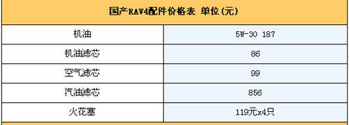 4.保養(yǎng)費(fèi):RAV4的首保為5000公里,保養(yǎng)間隔為5000公里,首保免費(fèi),質(zhì)保期為2年4萬(wàn)公里。據(jù)了解RAV4每5000公里要經(jīng)歷一次小保養(yǎng),包括工時(shí)費(fèi)在內(nèi)費(fèi)用大概為375元,2萬(wàn)公里的大保養(yǎng)在1000元左右,這樣算來(lái)6萬(wàn)公里RAV4的總費(fèi)用在5500元左右.平均每年2萬(wàn)公里保養(yǎng)費(fèi)用在1833元左右。