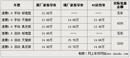 速騰作為一汽大眾新一代“A級”車生產(chǎn)平臺的產(chǎn)物,上市當初憑借全系車型標配ESP電子穩(wěn)定程序而成為統(tǒng)計標桿。隨著國家對1.6及以下排量車型減免一半購置稅政策的出臺,速騰1.6車型更受到消費者的追捧。據(jù)網(wǎng)上車市價格監(jiān)測系統(tǒng)顯示,速騰1.6排量全系車型廠家指導價格上調(diào),優(yōu)惠幅度降低。相關車型及價格如下表所示:
