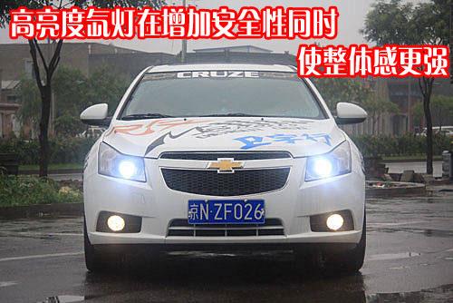 這個(gè)“街跑”科魯茲主要針對(duì)外觀進(jìn)行了一系列改裝。首先,它的車頭部分最為顯著的改變?cè)谟谠黾恿烁吡炼鹊碾瘹獯鬅簦乖揪季加猩竦摹苞椦邸备涌鋸,不僅看起來(lái)漂亮,而且提高了夜間行駛安全性。