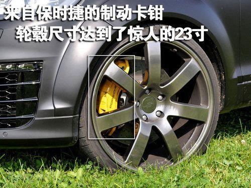 改裝后的奧迪Q7輪轂尺寸達(dá)到了23寸,輪胎規(guī)格為315/25 R23。如此驚人的尺寸讓我們很難再把眼前的Q7和“越野”二字聯(lián)系在一起,它儼然變成了一款公路上的速度機(jī)器。